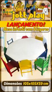 Mesa infantil modelo Octavado em MDF medindo 1,05x1,05M de tampo e 59cm altura.