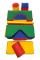 Composição: Blocos de espuma com densidade 23, revestidos com material plástico (Bagum) colorido. Cada conjunto contém 9 peças de formas variadas, sendo que a peça maior mede 45x20x20cm.
